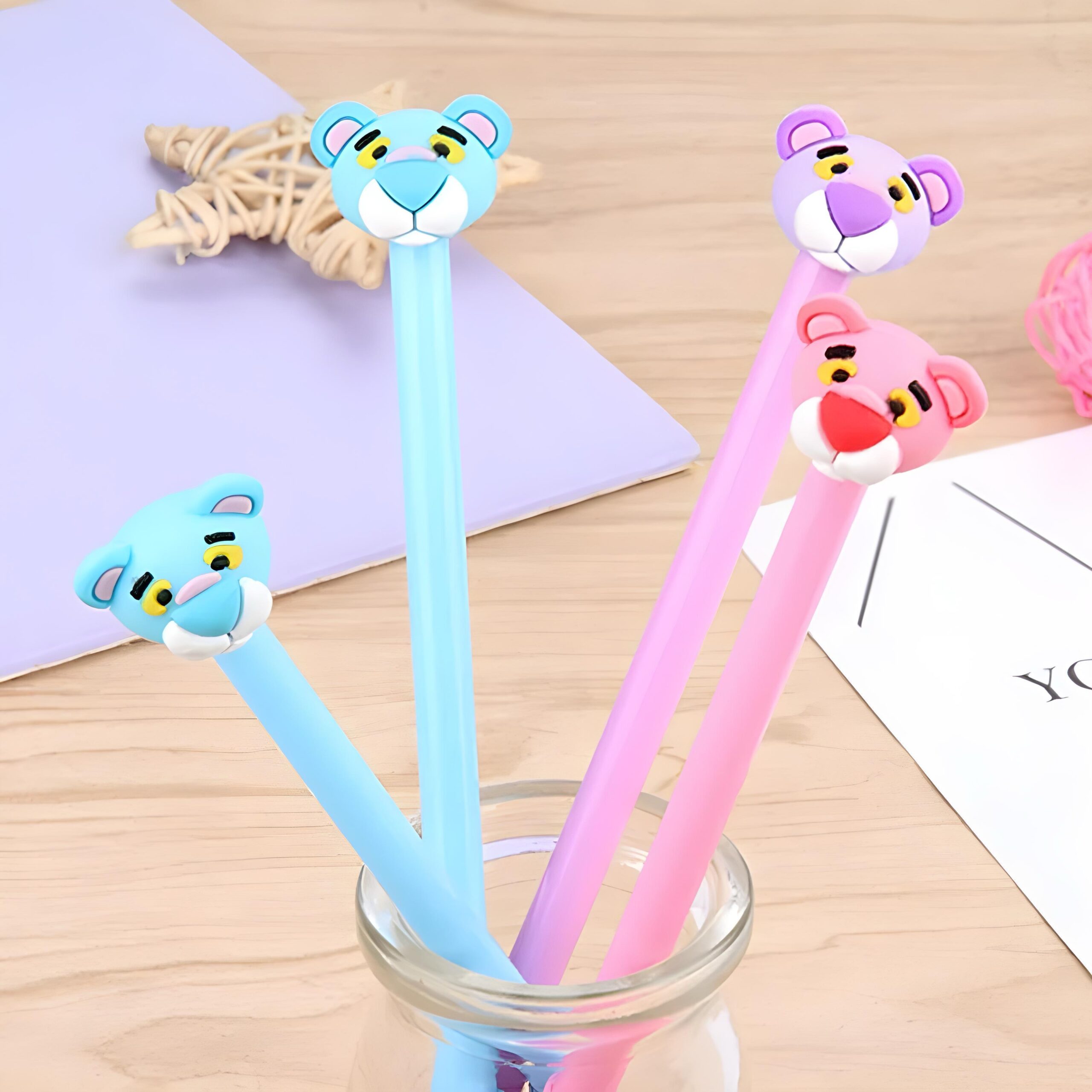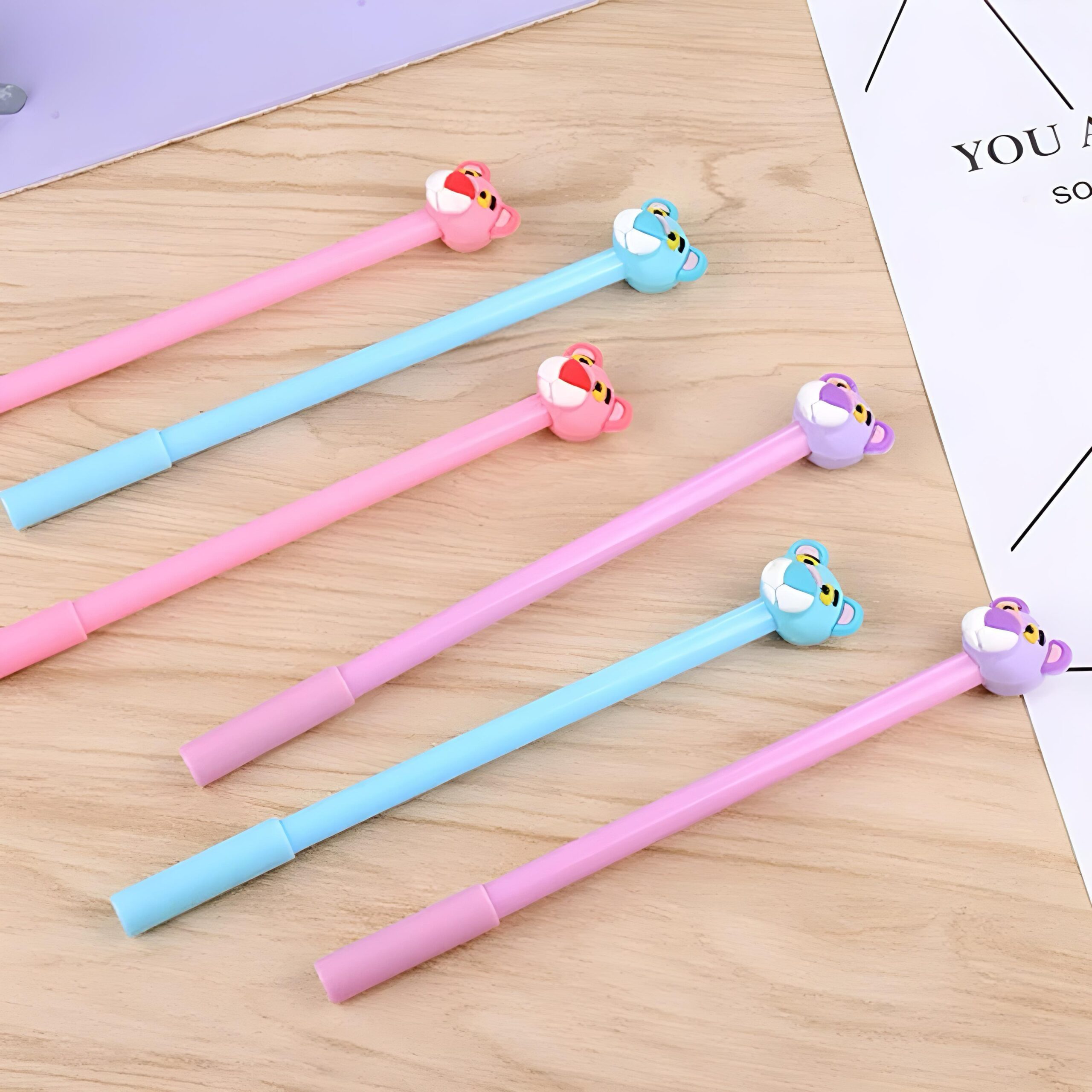 Kit de canetas em gel pantera cor de rosa, com ponta de 0,5mm e tinta na cor preta. Possui escrita macia e fina, perfeita para desenhos e anotações, além de deixar sua mesa de estudos ou escritório muito mais divertida e estilosa!