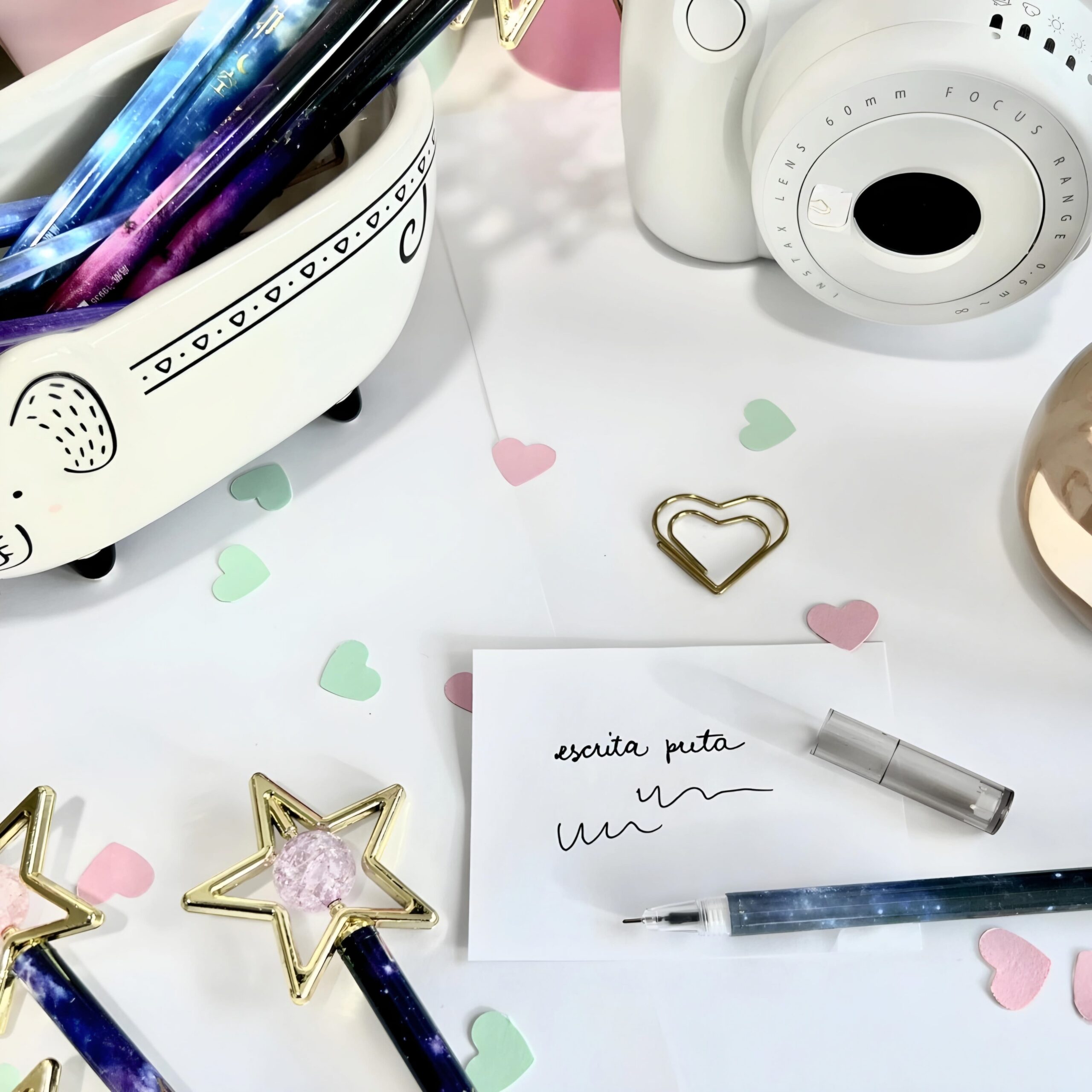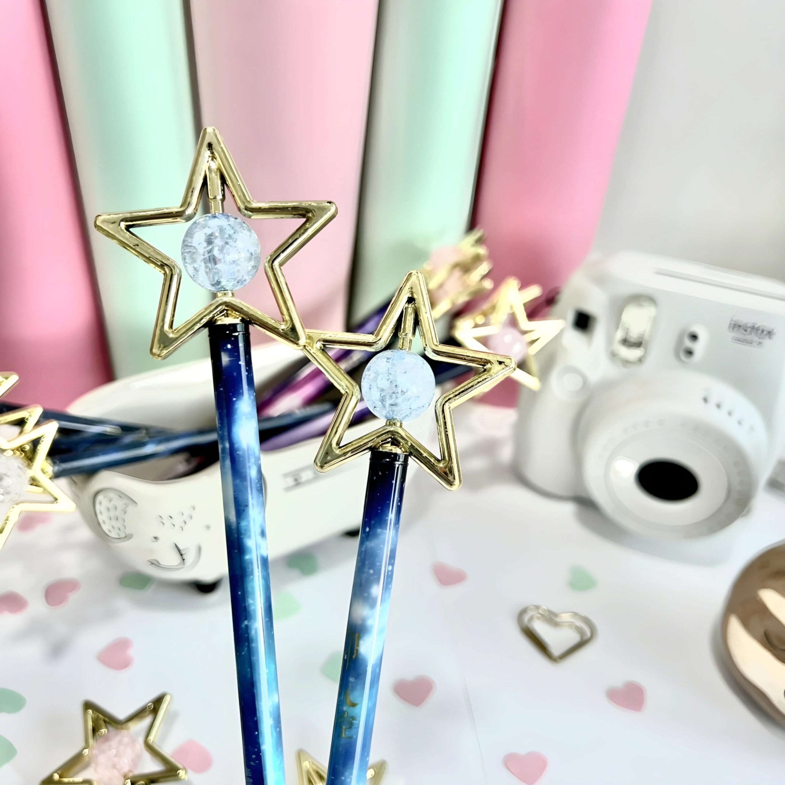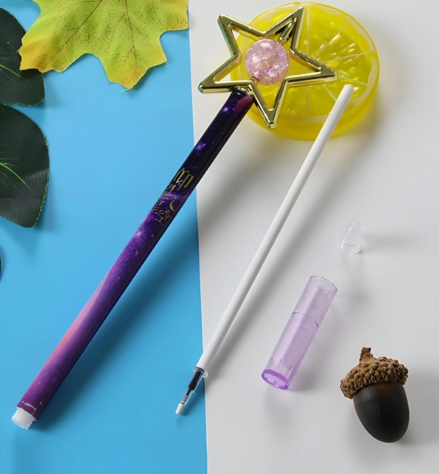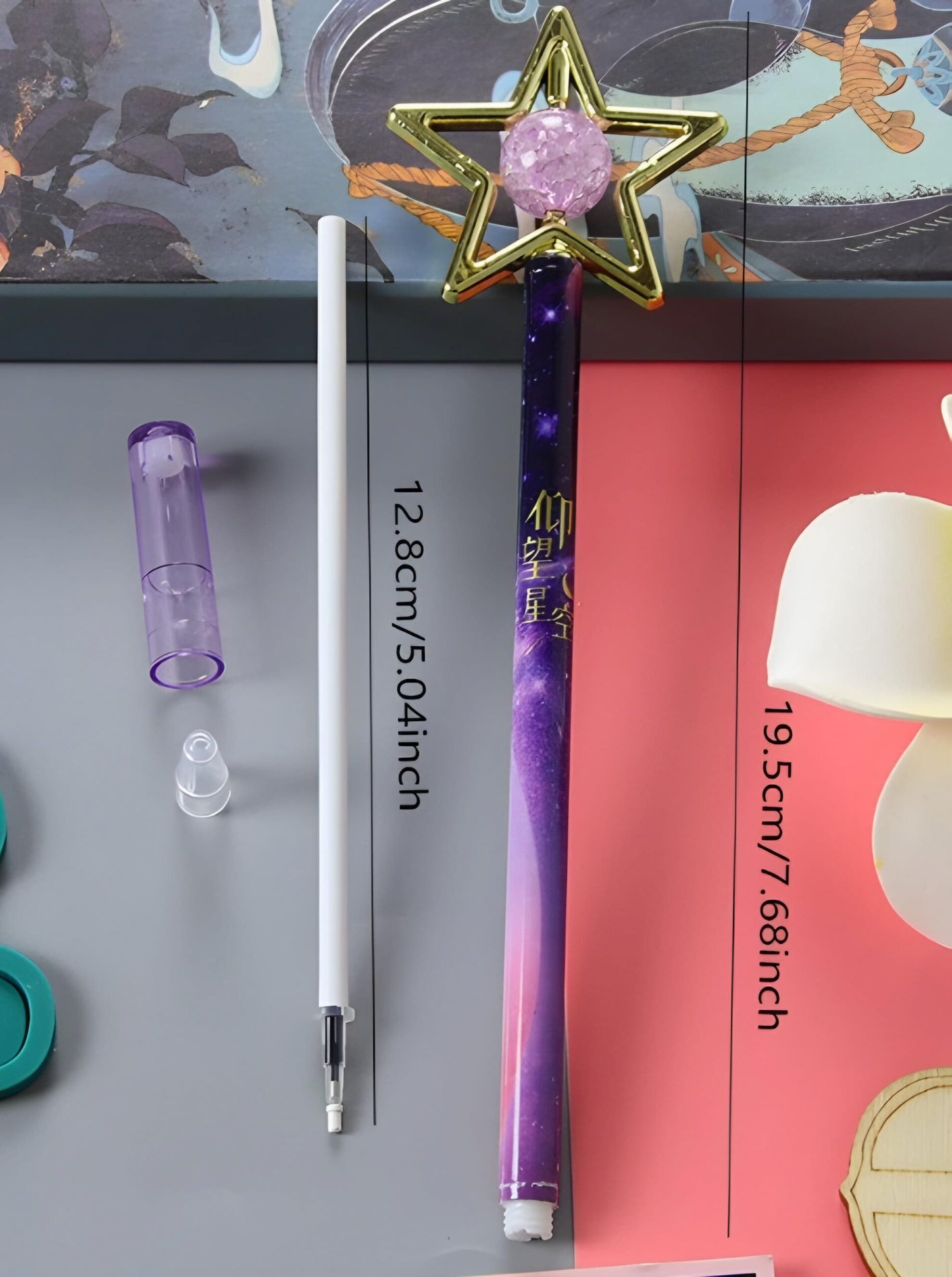 Caneta em gel com linda estampa galáctica e estrela dourada no topo, com ponta fina de 0,5mm e tinta na cor preta. Possui escrita macia e fina, perfeita para desenhos e anotações, além de deixar sua mesa de estudos ou escritório muito mais divertida e estilosa!