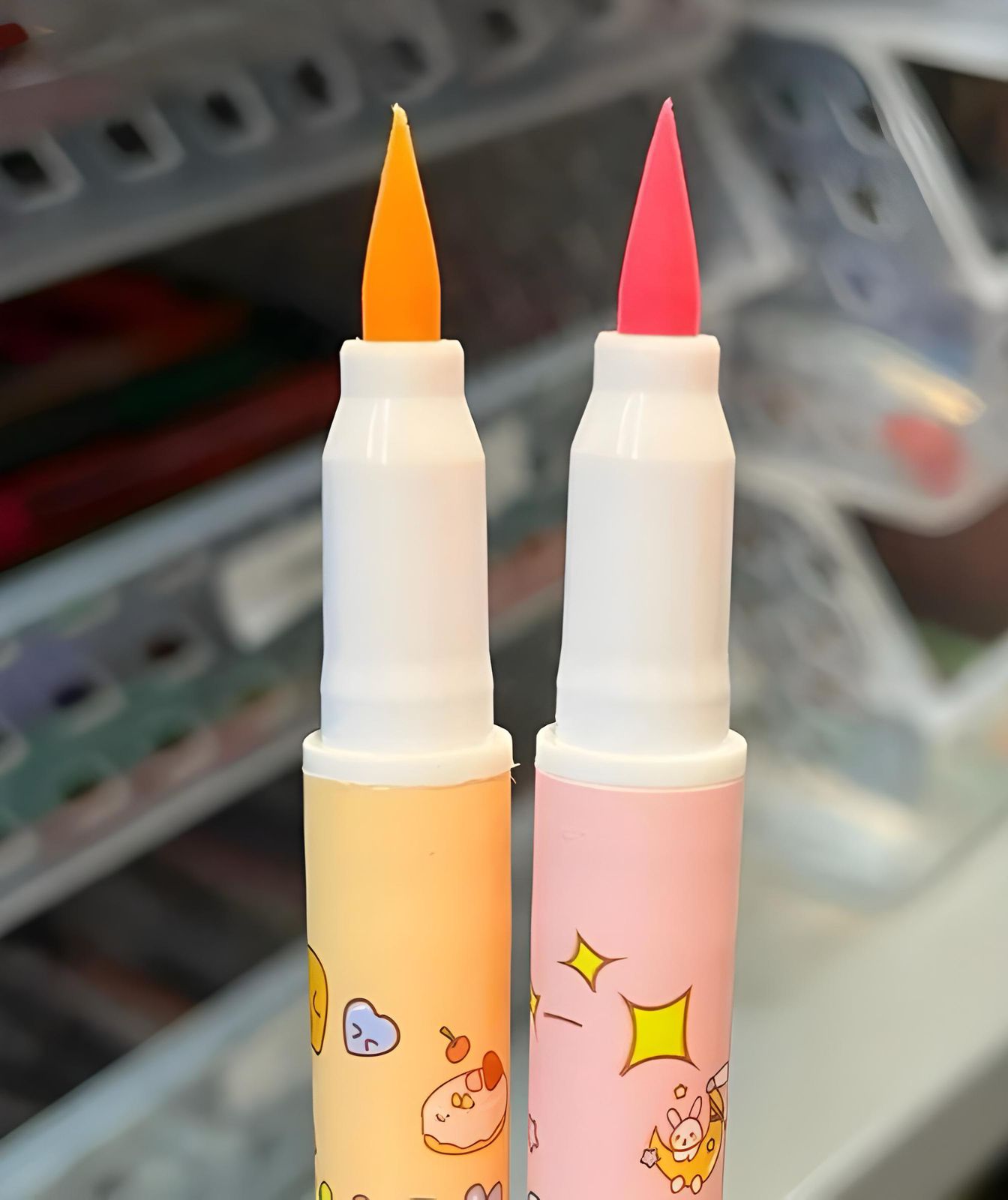 Kit com 6 canetas ponta dupla brush pen/canetinhas super fofas. O kit ideal para dar um toque especial em sua agenda ou caderno, perfeitas para grifar aquela parte importante do texto! Conta com 6 cores: verde, rosa, amarelo neon, azul, roxo e laranja. Além de possuir lindas cores, é versátil pois apresenta duas pontas e funcionalidades: brush pen e canetinha.