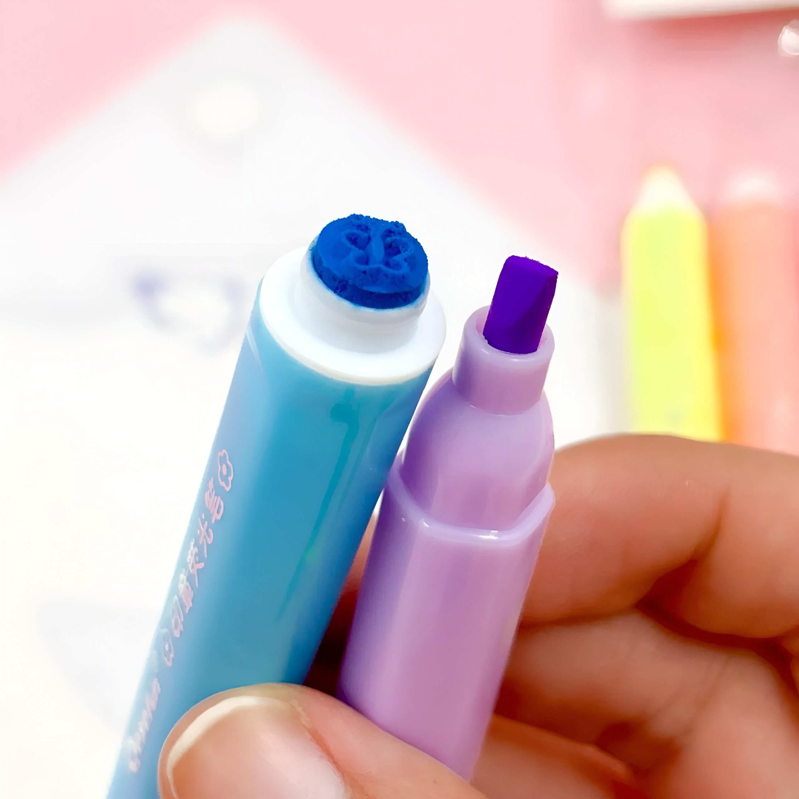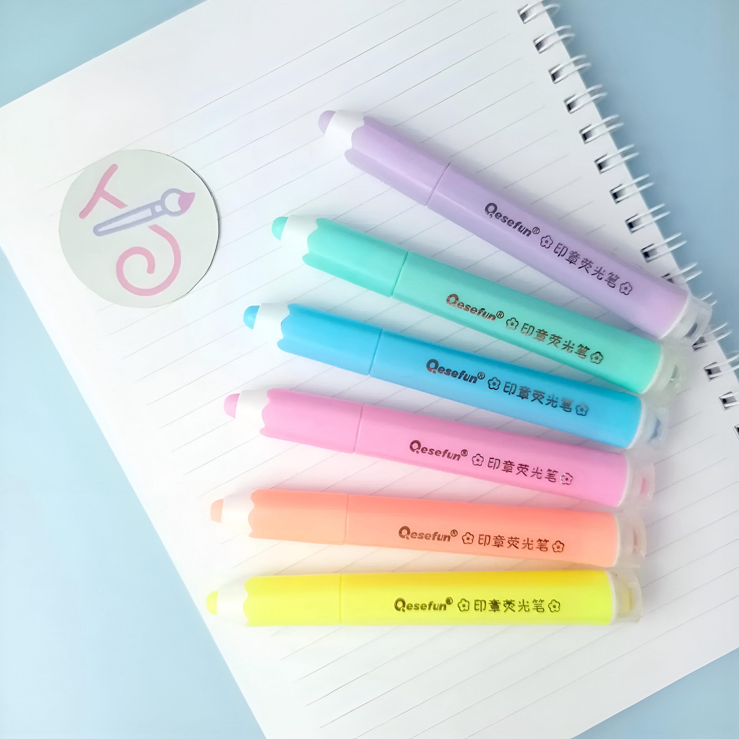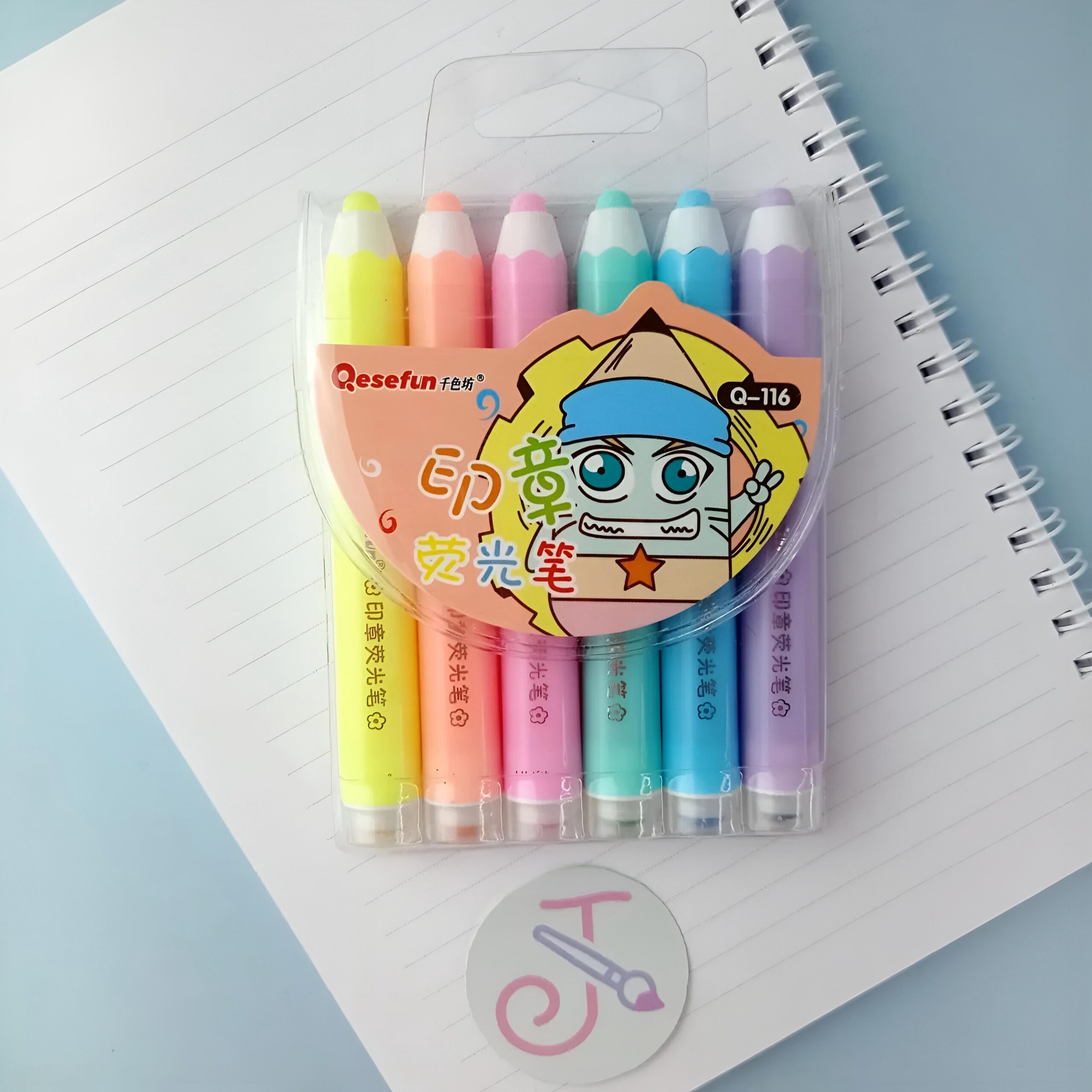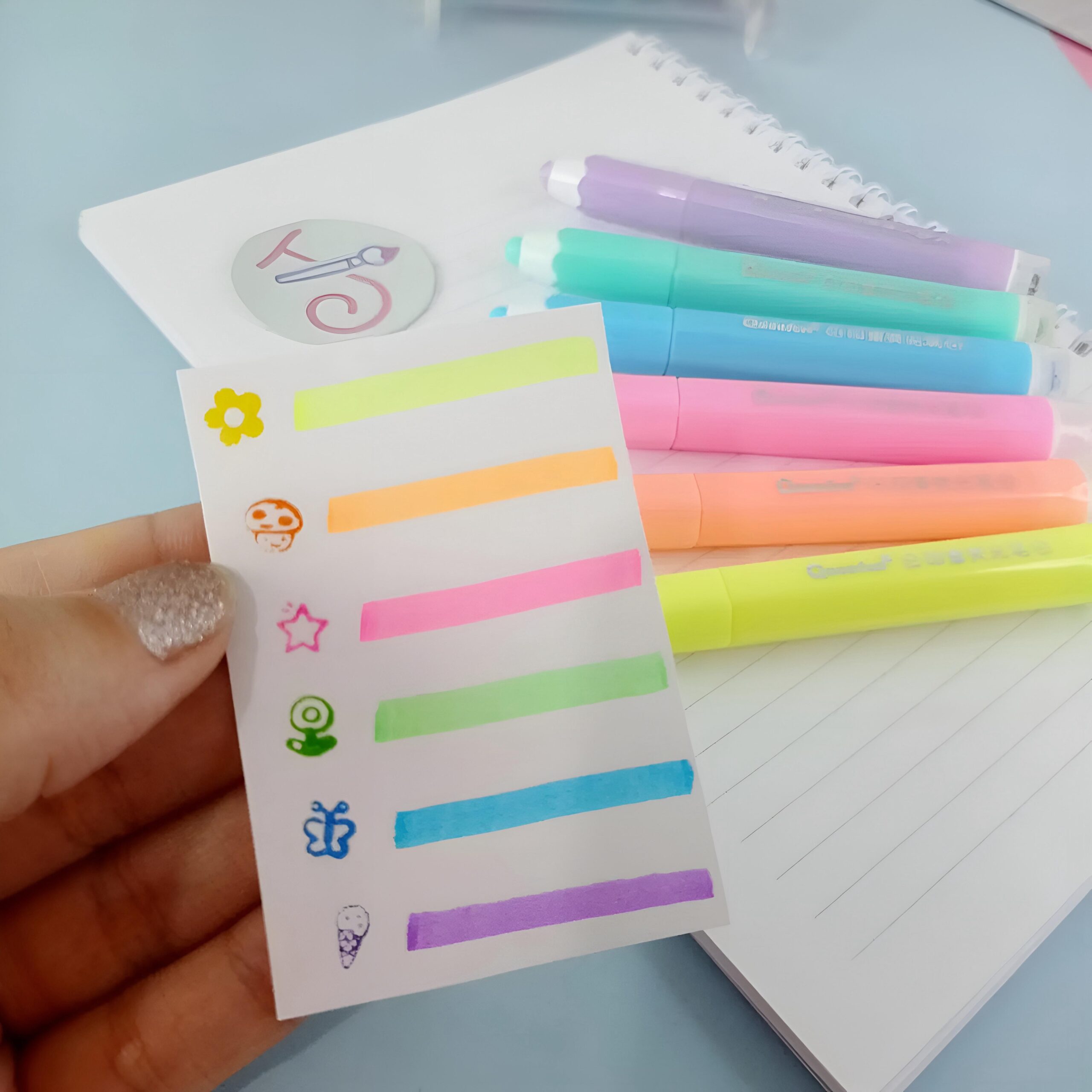 Item incluso: 1 Kit Marca Texto 6 Cores Com Carimbo Neon