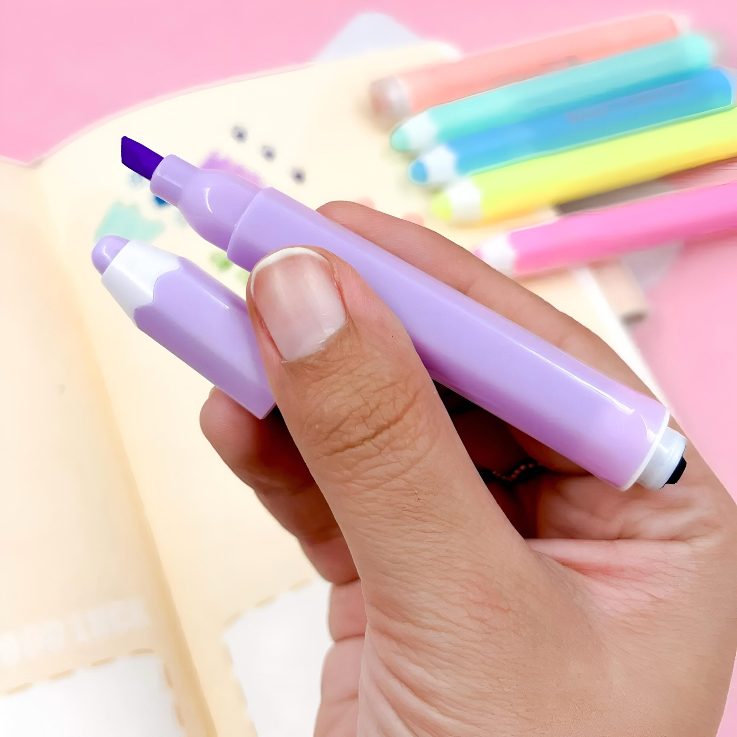 Além de lindas cores, os marca-textos apresentam ponta chanfrada, o que permite diferentes espessuras de traço. Com essas cores você pode destacar as palavras sem que isso dificulte a sua leitura depois.